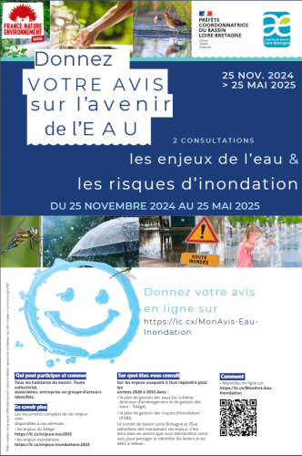 Les enjeux liés à la gestion de l’eau et aux risques d’inondations sont de plus en plus pressants dans notre région (Inondations historiques dans la région de Rennes en 2025). Entre la gestion de la ressource en période de sécheresse, la pollution des cours d’eau et l’augmentation des événements climatiques extrêmes, il est essentiel de définir ensemble des actions et des solutions adaptées. Cette consultation est l’occasion de recueillir les avis de chaque habitant du Bassin Loire-Bretagne ainsi que des idées pour mieux gérer l’eau et les risques associés.